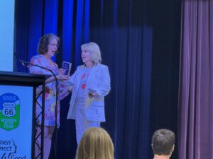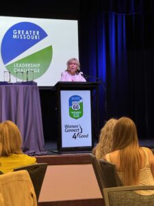 In her Smart, Amazing Conversations with Dr. Nancy podcast appearance, GMLF Executive Director, Katie Steele-Danner described the organization as “a traveling symposium with a class of 30-40 women who meet for a dozen days in four, three-day sessions.” Each session conducts a deep dive into the host community’s specific issues, often uncovering problems that require solutions both locally and statewide, as well as those that intersect with national and global trends. It focuses on emerging women leaders, educating them about the state of Missouri and helping them realize where their strengths and leadership can make a difference.” She described the Challenge more thoroughly at the award luncheon: